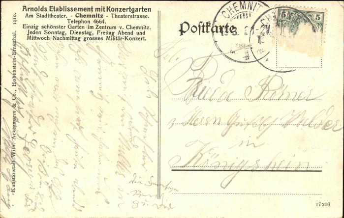 40997697 Chemnitz Arnolds Etablissement Konzertgarten KatCode 11110014161000