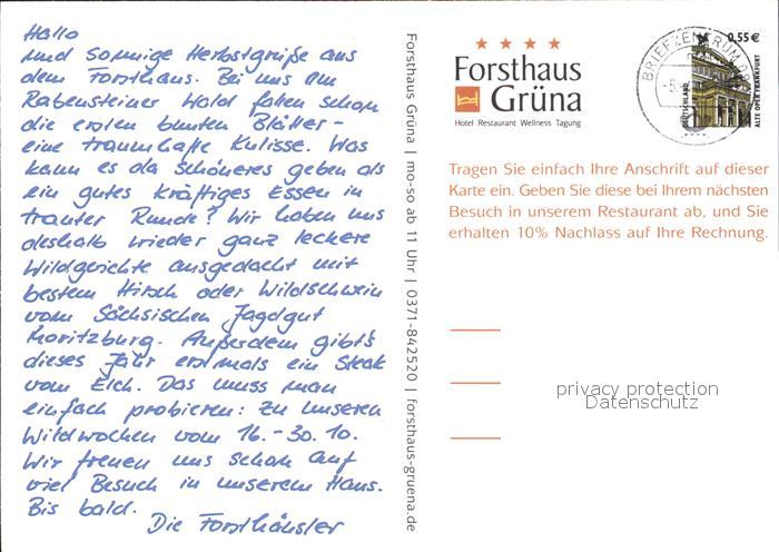 72382062 alte Postkarte Chemnitz Forsthaus Gruena postalisch gelaufen Erhaltung siehe scans KatCode: 11110014161000