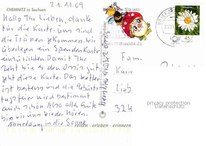 72854627 alte Postkarte Chemnitz Karl-Marx-Denkmal Roter-Turm Rathaus Theaterplatz postalisch gelaufen Erhaltung siehe scans [LiesaD40] KatCode: 11110014161000