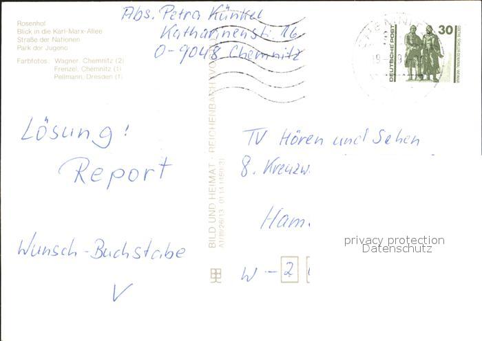 72324627 alte Postkarte Chemnitz Rosenhof Karl-Marx-Allee Strasse der Nationen postalisch gelaufen Erhaltung siehe scans KatCode: 11110014161000