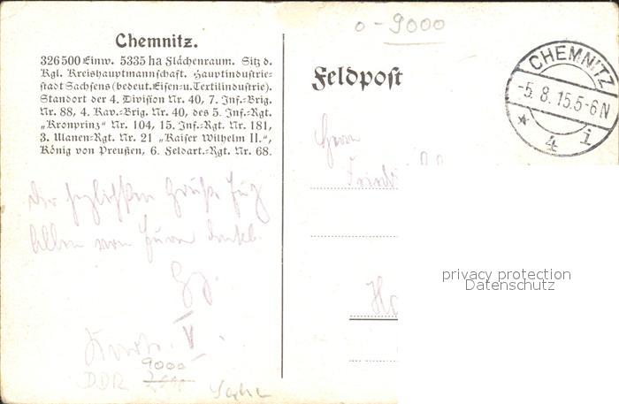 42204046 alte Postkarte CHEMNITZ Sachsen Markt Rathaus postalisch gelaufen Feldpost Erhaltung siehe scans KatCode: 11110014161000