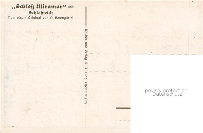 73802210 CHEMNITZ Sachsen Schloss Miramar und Schlossteich nach Original von O. Baumgaertel Kuenstlerkarte postalisch nicht gelaufen Erhaltung siehe scans [FriedD77] Frie Katcode 11110014161000
