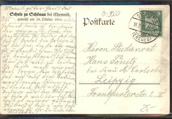 41312896 CHEMNITZ Sachsen Schule zu Schoenau postalisch gelaufen gute Erhaltung Alte Ansichtskarte Postkarte alte Postkarte hz_L Katcode 11110014161000
