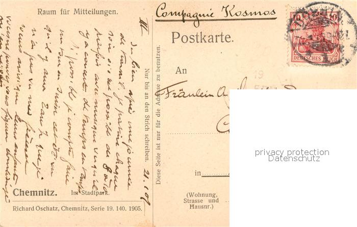 43491477 CHEMNITZ Sachsen Stadtpark postalisch gelaufen Erhaltung siehe scans [LiesaD40] alte Postkarte Lies Katcode 11110014161000