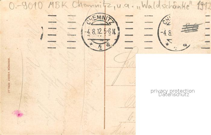 73698543 CHEMNITZ Sachsen Stadtpark Waldschaenke Bismarckturm Schloss und Teich postalisch gelaufen Erhaltung siehe scans [LiesaD40] alte Postkarte Lies Katcode 11110014161000