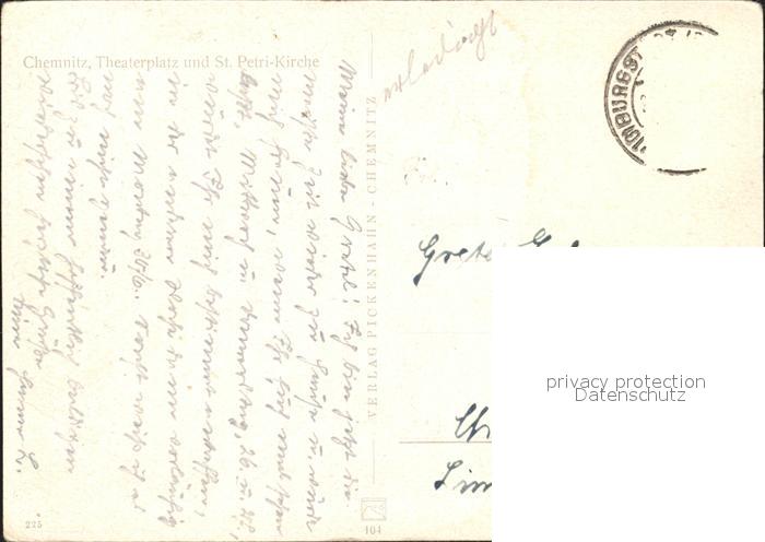 72055090 alte Postkarte CHEMNITZ Sachsen Theaterplatz St Petri Kirche postalisch gelaufen Erhaltung siehe scans KatCode: 11110014161000