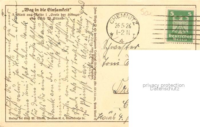 43329748 CHEMNITZ Sachsen Weg in die Einsamkeit 5. Blatt aus Reihe 1 Seele der Heimat von Erich W. Eiland Kuenstlerkarte postalisch gelaufen Erhaltung siehe scans [FriedD77] alte Postkarte Frie Katcode 11110014161000