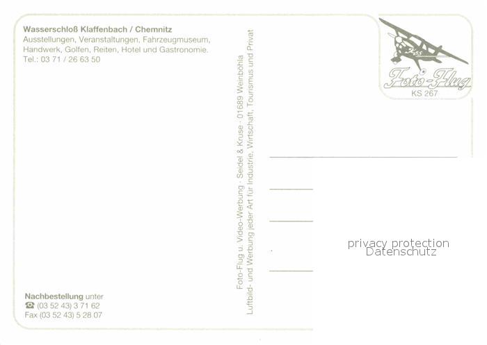 72891193 Chemnitz Wasserschloss Klaffenbach Fliegeraufnahme postalisch nicht gelaufen Erhaltung siehe scans [WerneD78] KatCode: 11110014161000