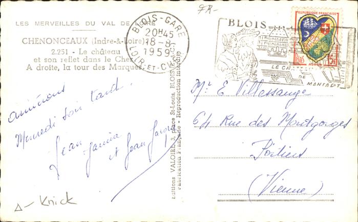 11367008 Chenonceaux Indre et Loire Chateau Tour des Marques KatCode 11170037237070