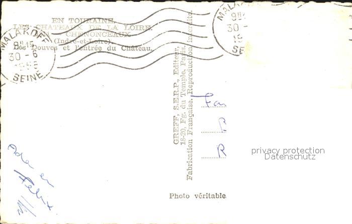 12448965 carte postale Chenonceaux Indre et Loire Chateaux de la Loire postalisch gelaufen Erhaltung siehe scans KatCode: 11170037237070