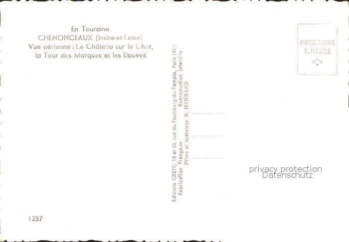 11902121 Chenonceaux Indre et Loire Fliegeraufnahme Chateau sur le Cher postalisch nicht gelaufen Erhaltung siehe scans KatCode: 11170037237070