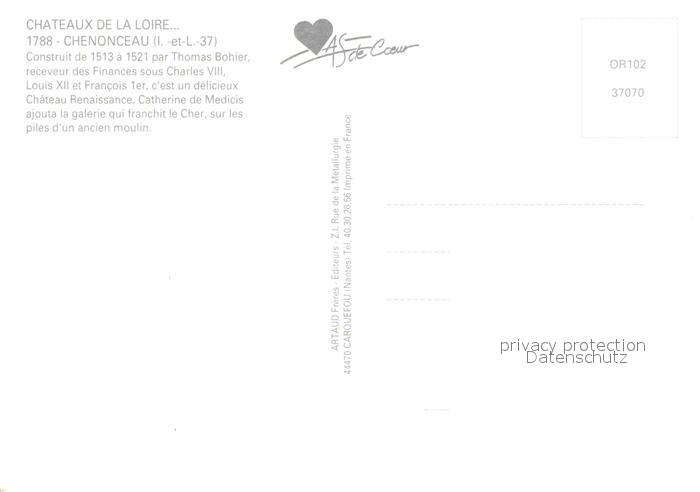 12904432 Chenonceaux Indre et Loire Fliegeraufnahme Chateaux KatCode 11170037237070