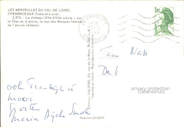 12592471 carte postale Chenonceaux Indre et Loire Le Chateau postalisch gelaufen Erhaltung siehe scans [AndreD76] KatCode: 11170037237070