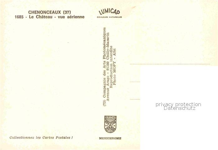 12767258 Chenonceaux Indre et Loire Le Chateau Vue aerienne postalisch nicht gelaufen Erhaltung siehe scans [WerneD78] KatCode: 11170037237070