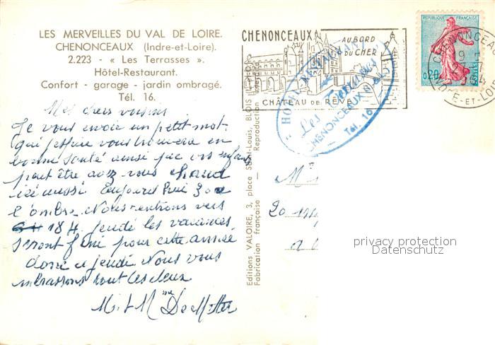 13583107 Chenonceaux Indre et Loire Les Terrasses Hotel Restaurant postalisch gelaufen Erhaltung siehe scans [WerneD78] carte postale Wern Katcode 11170037237070