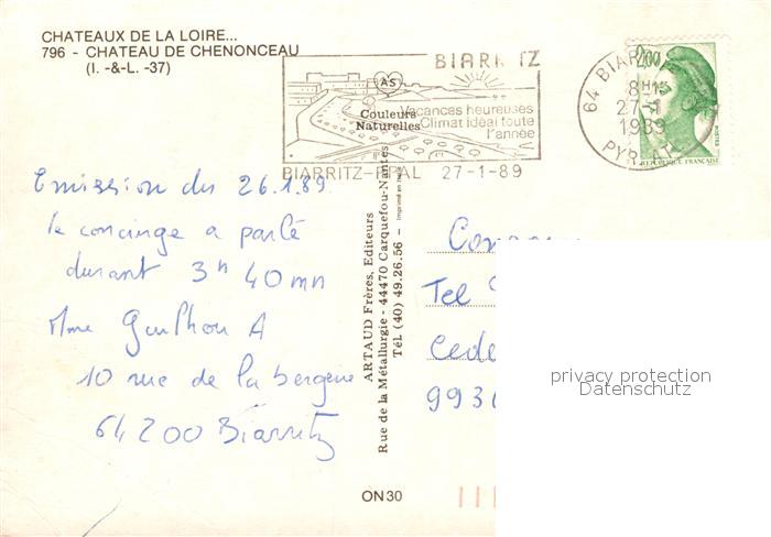 13213475 carte postale Chenonceaux Indre et Loire Vue generale Les Jardins Le Chateau Tapisseries Flamandes La Galerie sur le Cher postalisch gelaufen Erhaltung siehe scans [WerneD78] KatCode: 11170037237070