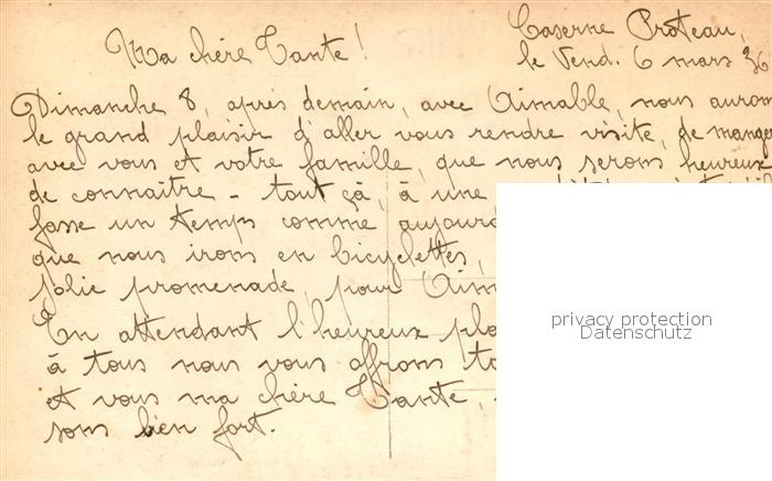 13511159 Cherbourg Caserne Proteau postalisch nicht gelaufen Erhaltung siehe scans [WerneD78] KatCode: 11170050250129