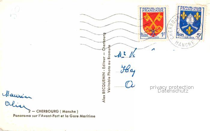 12766531 carte postale Cherbourg Fliegeraufnahme mit Hafen postalisch gelaufen Erhaltung siehe scans [LiesaD40] KatCode: 11170050250129