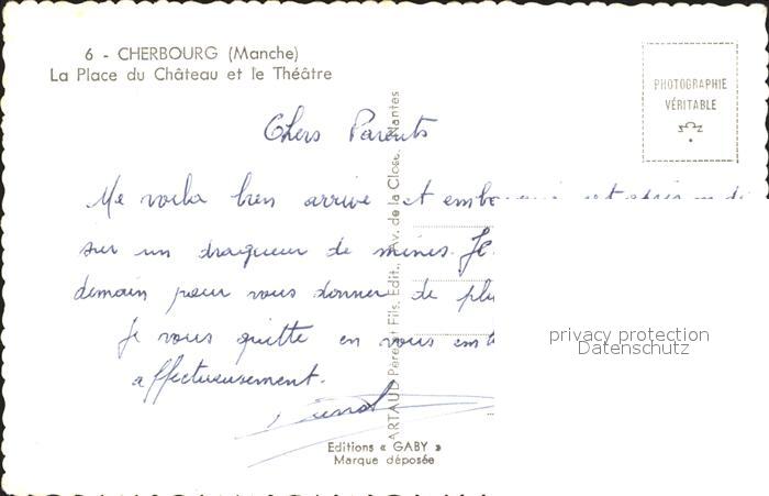12273605 Cherbourg Place du Chateau el le Theatre postalisch nicht gelaufen Erhaltung siehe scans KatCode: 11170050250129