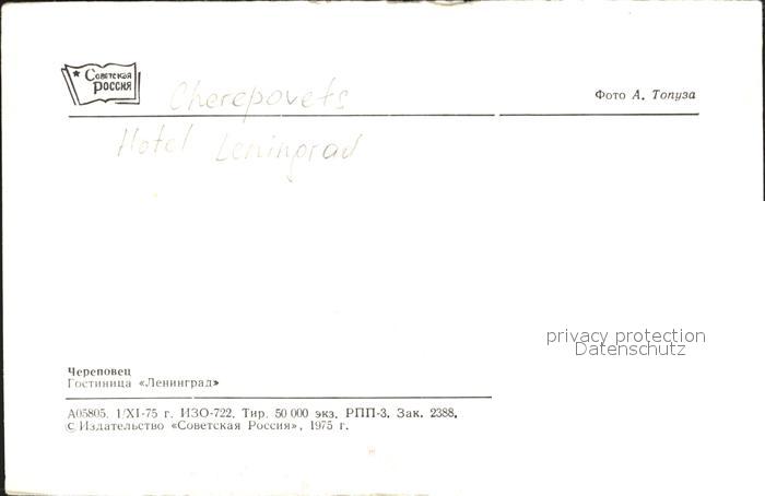 Cherepovets Tscherepowez Hotel Leningrad postalisch nicht gelaufen Erhaltung siehe scans