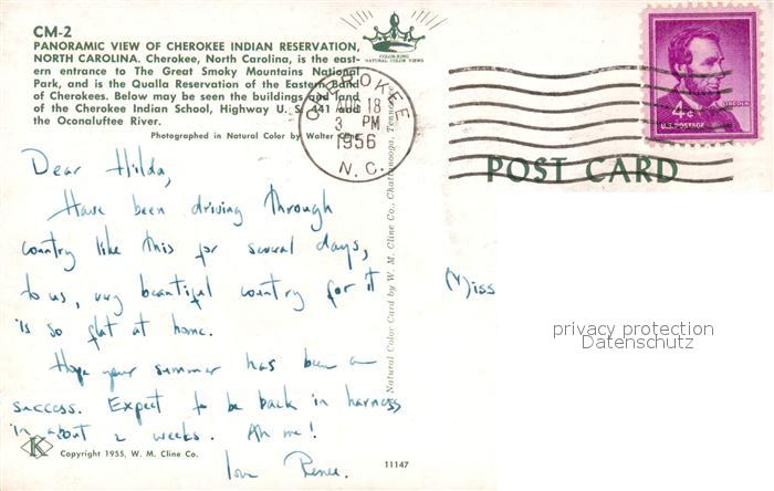 73295334 old postcard Cherokee North Carolina Indian Reservation postalisch gelaufen Erhaltung siehe scans [KathaD81] KatCode: 14140350000000