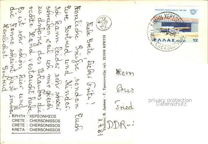 old postcard Chersonisou Limenas Boote Stand postalisch gelaufen Erhaltung siehe scans