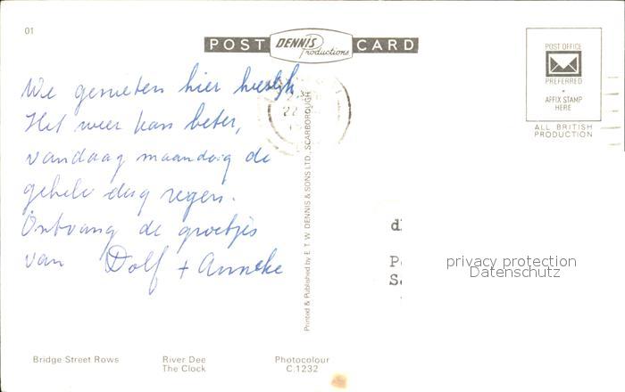 old postcard CHESTER Cheshire UK Bridge Street Rows River Dee The Clock postalisch gelaufen Erhaltung siehe scans