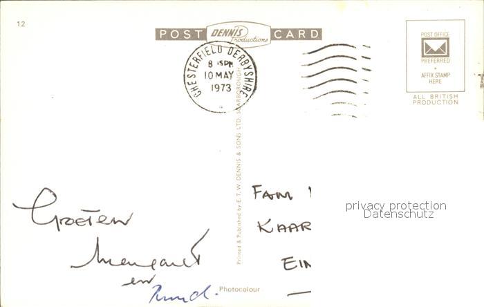 old postcard Chesterfield Crooked Spire postalisch gelaufen Erhaltung siehe scans