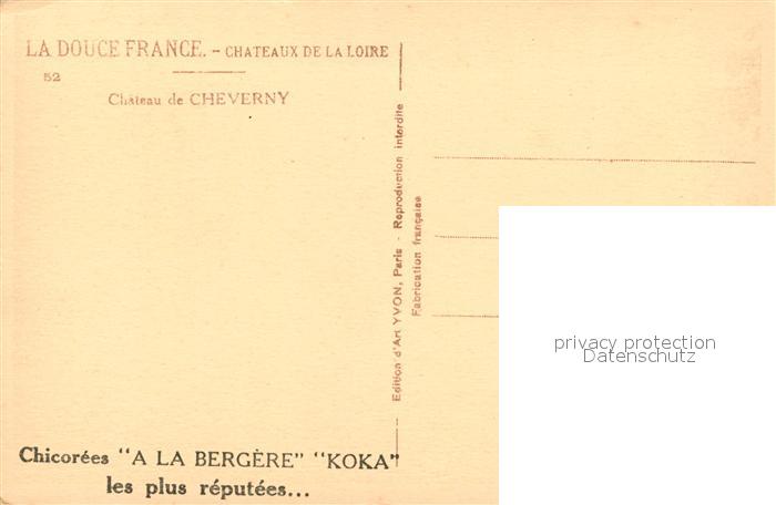 13546263 Cheverny Chateau Schloss Collection Chateaux de la Loire postalisch nicht gelaufen Erhaltung siehe scans [FriedD77] KatCode: 11170041141050