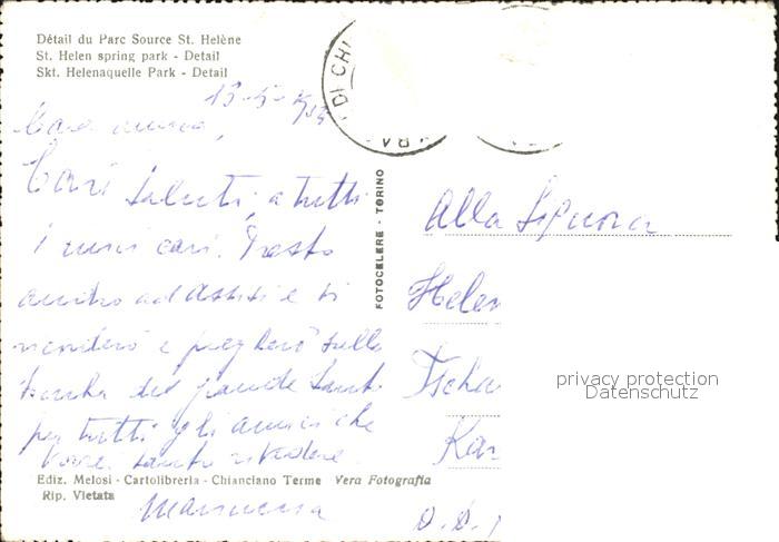 old postcard Chianciano Terme Sankt Helenenquelle Park postalisch gelaufen Erhaltung siehe scans