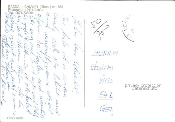 old postcard Chianti Radda Restaurant Petroio postalisch gelaufen Erhaltung siehe scans