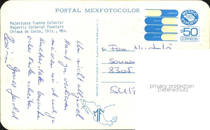 alte Postkarte Chiapas Mexico Majestuosa Fuente Colonial postalisch gelaufen Erhaltung siehe scans [AndreD76 kt121box]