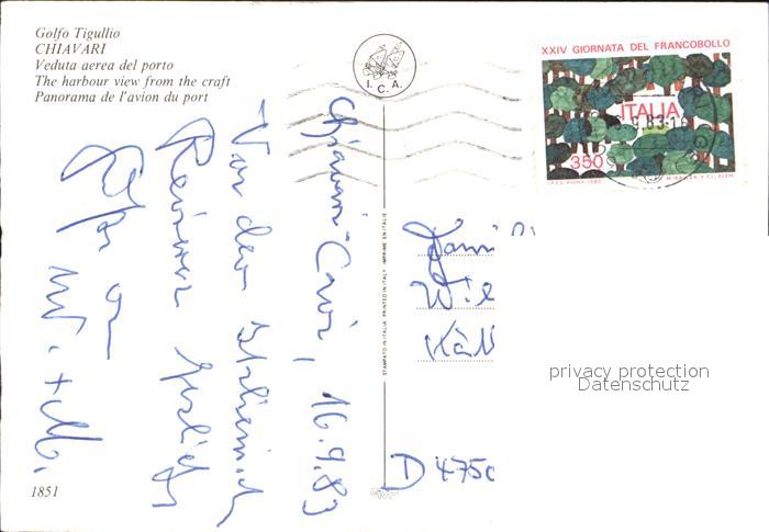 old postcard Chiavari Fliegeraufnahme mit Hafen postalisch gelaufen Erhaltung siehe scans