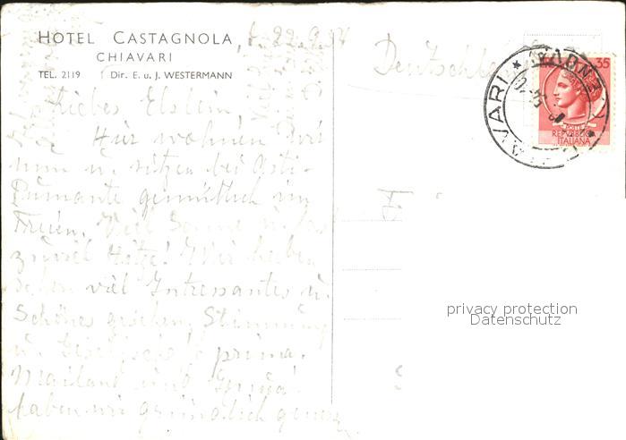 old postcard Chiavari Hotel Castagnola postalisch gelaufen Erhaltung siehe scans