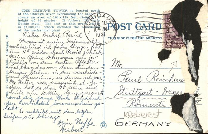 11109647 Chicago Heights Tribune Tower postalisch nicht gelaufen Alte Ansichtskarte Postkarte hz_U Katcode 14140150000000