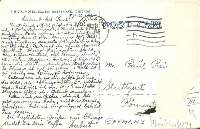 11109649 old postcard Chicago Heights Y. M. C. A. Hotel postalisch gelaufen KatCode: 14140150000000