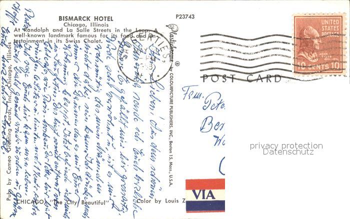 72167432 old postcard Chicago Illinois Bismarck Hotel postalisch gelaufen Erhaltung siehe scans KatCode: 14140150000000