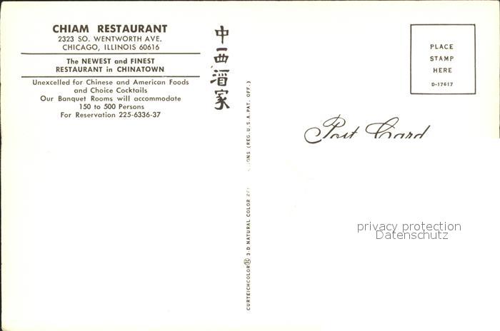 71847841 Chicago Illinois Chiam Restaurant postalisch nicht gelaufen Erhaltung siehe scans KatCode: 14140150000000