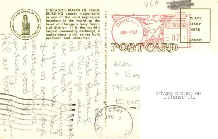 73060753 old postcard Chicago Illinois Chicagos Board of Trade Buildings postalisch gelaufen Erhaltung siehe scans [WerneD78] KatCode: 14140150000000
