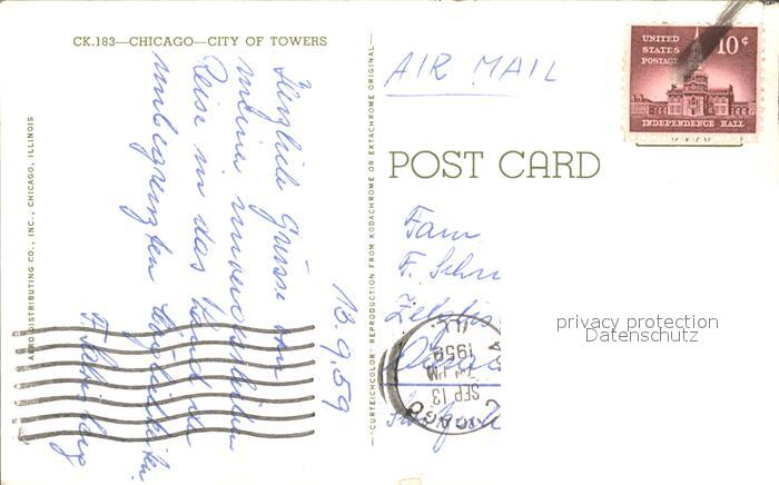 11693846 old postcard Chicago Illinois City of Towers Skyscraper postalisch gelaufen Erhaltung siehe scans KatCode: 14140150000000