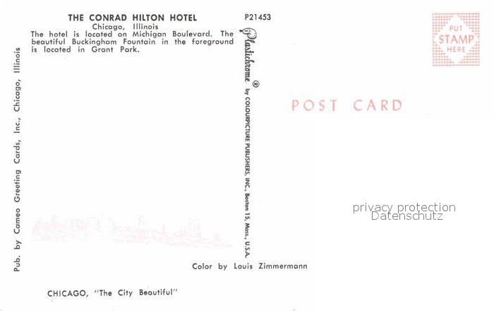 72822342 Chicago Illinois Conrad Hilton Hotel Buckingham Fountain Grant Park postalisch nicht gelaufen Erhaltung siehe scans [FriedD77] KatCode: 14140150000000
