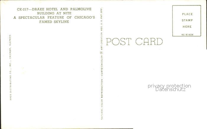 72278254 Chicago Illinois Drake Hotel and Palmolive Building at night postalisch nicht gelaufen Erhaltung siehe scans KatCode: 14140150000000