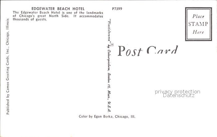 72922175 Chicago Illinois Edgewater Beach Hotel postalisch nicht gelaufen Erhaltung siehe scans [WerneD48] KatCode: 14140150000000