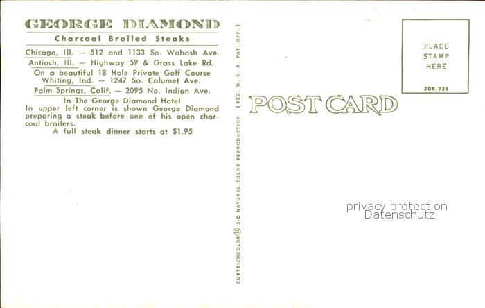 71942915 Chicago Illinois George Diamond Charcoal Broiled Steaks postalisch nicht gelaufen KatCode: 14140150000000