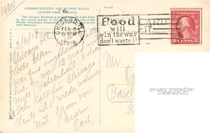 13309243 old postcard Chicago Illinois German Building and Bathing Beach Jackson Park postalisch gelaufen Erhaltung siehe scans [WerneD78] KatCode: 14140150000000