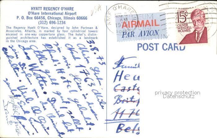 72460040 old postcard Chicago Illinois Hyatt Regency O’Hare International Airport postalisch gelaufen Erhaltung siehe scans KatCode: 14140150000000