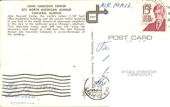 72296267 old postcard Chicago Illinois John Hancock Center postalisch gelaufen Erhaltung siehe scans KatCode: 14140150000000