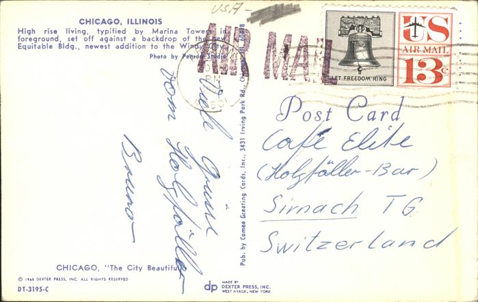 11491481 old postcard Chicago Illinois Marina Tower postalisch gelaufen Erhaltung siehe scans KatCode: 14140150000000