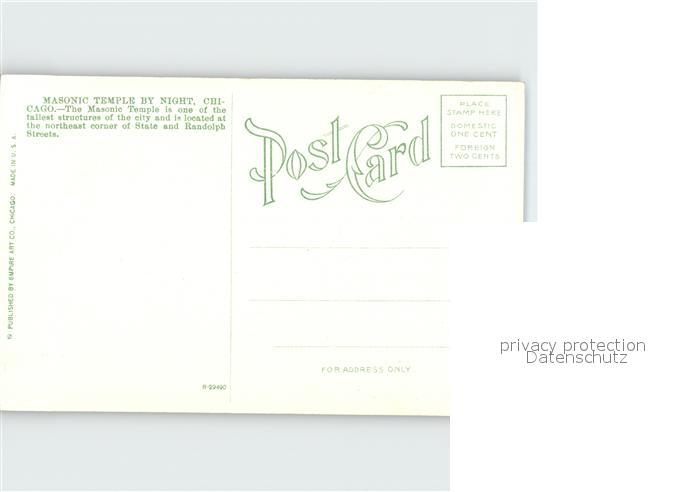 72108400 Chicago Illinois Masonic Temple postalisch nicht gelaufen Erhaltung siehe scans KatCode: 14140150000000