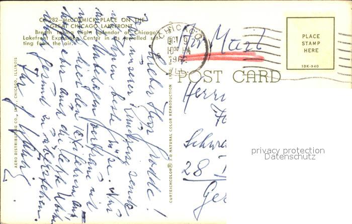 72486843 old postcard Chicago Illinois McCormick Place on the Great Chicago Lakefront Air view postalisch gelaufen Erhaltung siehe scans KatCode: 14140150000000